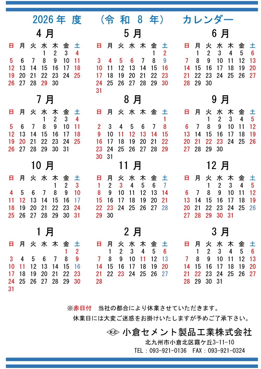 ホーム 各種商品 図面検索・ダウンロード 施工実績 会社案内 関連リンク 資料ダウンロード 採用情報 お問い合わせ 擁壁類 カルバート類 農業土木類 側溝類 道路用品類 上・下水道類 環境類 その他 新商品:○○○○○○○○○ OKエコブロック プレキャストウォール ニューウォルコンⅣ型 カクセール シキール ツメール KKブロック レベロック ガーディアンブロックⅡ KP大型ブロック(低擁壁用) KP大型ブロック(高擁壁用) SL-G SL-FF ハイティーウォール Coco・A・グリーン うらかたくん KC型万代塀・有刺鉄線柱 砂防堰堤ブロック RCボックスカルバート IBボックスカルバート スーパーハイブリッド Iホール(アイホール) KC柵工枠Ⅱ型 KC柵工板Ⅱ型 ノボレール 鉄筋コンクリート土止め杭・板 分水桝・畦畔ブロック 排水桝・境界標・L型簡易土留めブロック BKCトラフ・BKC暗渠 L型水路ブロック 電柱迂回暗渠工法 表層暗渠側溝 クリーン側溝 サイクルレーン側溝 ロードレインⅠ型 スピーダー SK導水溝 KNS側溝 FPU側溝(DCT側溝) 上ぶた式U形側溝 鉄筋コンクリートU形 U形井堰 落蓋式U形側溝 道路用側溝 横断側溝・L形側溝・V形側溝 横断暗渠 U型水路 スリットホール(雨水浸透) FR横断側溝・FR桝 ライン導水ブロック-F型 セパロック 防水板 自在R連続基礎 プレガードⅡ Cラインブロック コンクリート境界ブロック 防草型歩車道境界ブロック ニュー歩車道境界ブロック カーストッパー・パーキングブロック すりつけ境界ブロック 乗入れ境界ブロック PU桝 植樹桝 角型桝 集水桝 雨水桝 グレーチング付集水桝・雨水桝 基礎ブロック 700・900Φ人孔(北九州市型人孔) マンホール鋳鉄蓋 汚水桝 下水道マンホール側塊 人孔床版 円形人孔・矩形人孔 上水道用品 防火水槽鉄蓋・防火標柱 ラダホール 環境 はやせ エコンフィッシャー エコンインセクター ショルダーブロック アームブロック D・BOX(地盤改良工法) 耐震性貯水槽 鉄道製品 照明灯基礎ブロック ソーラーキーパー トワイレ・リベルテ PCP AB ROCK INFO 新着情報 ホーム 新着情報 新着情報 Info 2026.01.15 2026年度カレンダーを公開いたしました。 当社の2026年度カレンダーを公開いたしました。2026年度もよろしくお願いいたしますPDFはこちら 新着情報一覧に戻る